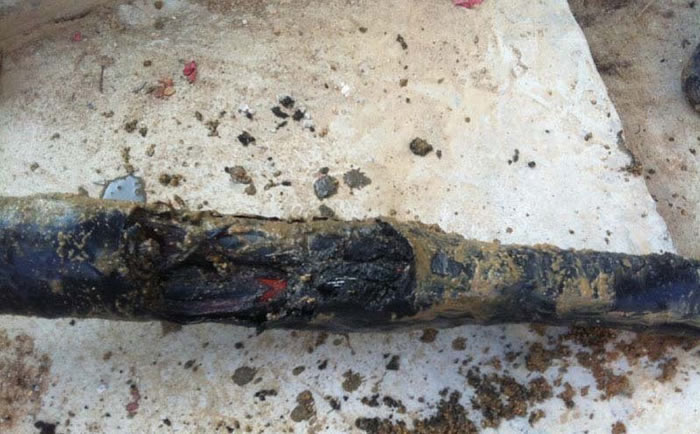 5. 絕大多數(shù)故障電纜在故障點(diǎn)處都有十分明顯的燒焦損壞現(xiàn)象。故障點(diǎn)在電纜外皮沒有留下痕跡的情況,十分罕見。